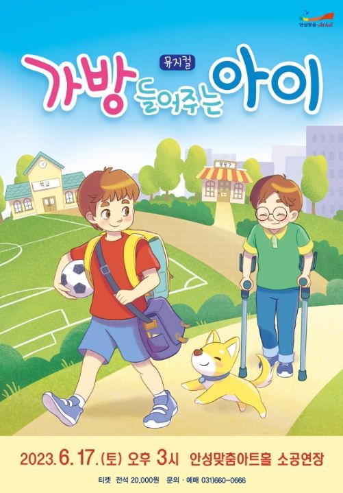 [제주교통복지신문 김강석 기자] 안성맞춤아트홀은 오는 6월 17일 토요일 15시, 안성맞춤아트홀 소공연장에서 온 가족이 함께 관람할 수 있는 어린이 뮤지컬 '가방 들어주는 아이'을 선보인다.