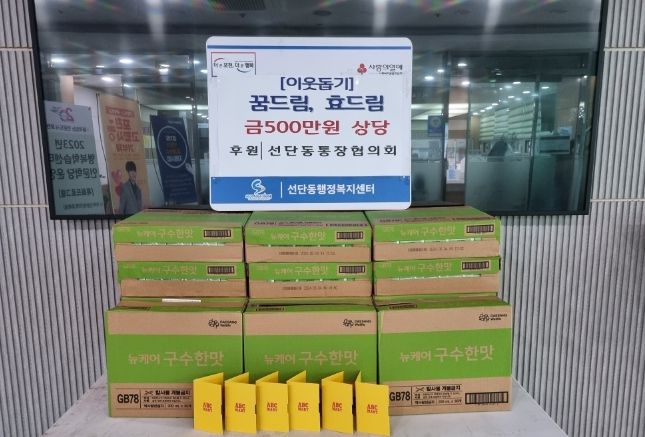 [제주교통복지신문 김강석 기자] 선단동 행정복지센터는 지난 30일 아이들에게는 ‘꿈’을 응원하고, 어르신에게는 ‘효’를 다하고자 ‘꿈드림, 효드림’ 이웃돕기 사업을 추진했다.