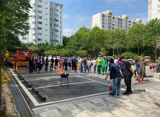 이날 훈련은 신속한 119 신고와, 인명대피 훈련, 소화기·소화전을 이용한 초기 화재 진압훈련, 화재 예방을 위한 소방안전교육, 자위소방대 임무 등 이론과 실무교육을 병행해 이루어졌다.