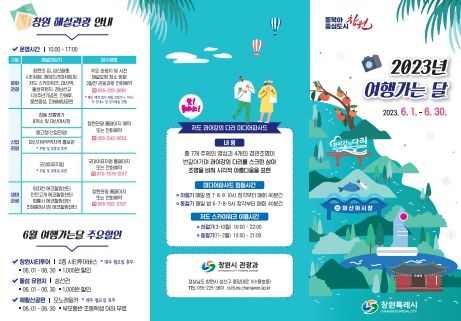 창원특례시는 문화체육관광부에서 주관하는 6월 ‘여행가는 달’ 한 달 동안 관광지 방문객을 대상으로 선물 증정 행사를 열고, 시티투어버스, 돝섬 유람선 등 요금 할인 혜택을 제공한다고 31일 밝혔다.