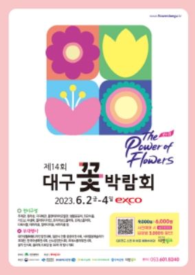올해 14회째를 맞는 대구꽃박람회는 ‘The power of Flowers(꽃의 힘)’주제로 화훼산업 관련 172개 기관(725개 부스, 15,000㎡)과 유명 플로리스트 700여 명의 화훼 작품과 다채로운 행사들을 한자리에서 만날 수 있다.
