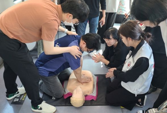 특히, 심폐소생술(CPR) 및 응급처치 교육은 대한적십자사 대구광역시지사 전문강사들의 협조로 실습 위주의 교육으로 진행됐다.