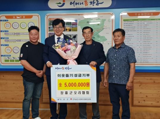 [제주교통복지신문 김강석 기자] 장흥군오리협회은 지난 25일 이웃돕기 성금 500만원을 장흥군에 기부했다.