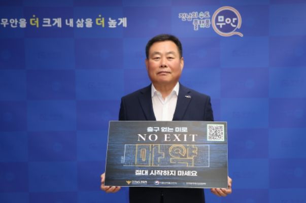[제주교통복지신문 김강석 기자] 김산 무안군수가 지난 30일 마약의 심각성을 알리기 위한 마약 예방‘출구 없음(NO EXIT)’ 이어가기 계몽운동(릴레이 캠페인)에 참여했다.