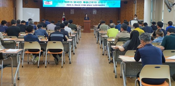 [제주교통복지신문 김강석 기자] 창녕군은 농촌일손 부족을 해결하기 위한 ‘외국인 계절근로자 프로그램’의 원활한 추진을 위해 지난 26일 2023년 하반기 계절근로자 신청 고용주 60여 명을 대상으로 설명회를 개최했다.