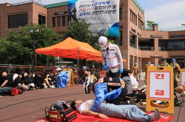 훈련에는 오후석 행정2부지사를 비롯해 경기도북부소방재난본부, 파주소방서, 파주시청 등 총 24개 기관·단체 431명과 장비 75대가 동원됐다.