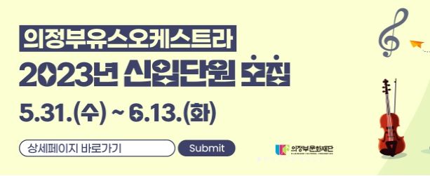 [제주교통복지신문 김강석 기자] 의정부문화재단(대표이사 박희성)은 2023년 파일럿프로그램으로 진행하는 ‘의정부유스오케스트라’ 단원을 6월 13일까지 연장 모집한다고 밝혔다.
