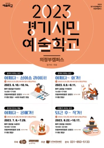2019년 경기문화재단과의 공동 기획을 시작으로 5년 연속 진행되는 '2023 경기시민예술학교 의정부캠퍼스'는 시민 참여형 문화예술교육 프로그램 운영을 통해 전문 예술교육 기회 확대와 지역 기반의 환경을 조성하고자 경기도와 경기문화재단이 주최하고 의정부문화재단이 주관하는 프로그램이다.