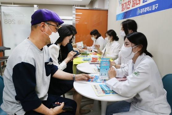구는 최근 이번 사업 첫 대상지인 롯데백화점 광주점에서 건강 관리 서비스(건강 상담·혈압 및 혈당 측정·심방세동 검사)와 함께 걷기 모바일 앱 설치, 직원 대상 ‘걷기 챌린지’ 등을 진행했다.