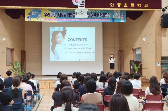 [제주교통복지신문 김강석 기자] 경기도고양교육지원청은'자녀의 올바른 디지털 이용 지도를 위한 학부모 디지털 시민역량교육'이라는 주제로 지능정보원 장성자 강사를 초빙하여 관내 초·중·고 희망 학부모 100여명을 대상으로 5월 31일(수) 화중초등학교 강당에서 역량강화 연수를 운영했다.