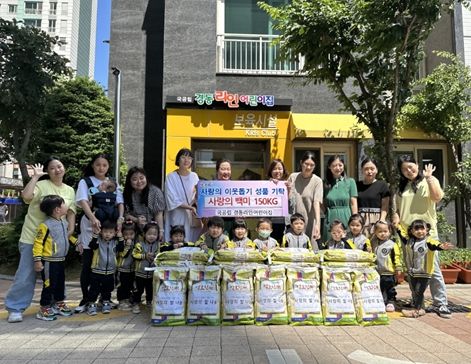지난 20일 경동리인어린이집과 함께하는 무계도시재생 놀이터 ‘LESS WASTE 페스티벌’이 개최됐다. 위 행사에서 열린 아나바다 나눔 장터에서 경동리인어린이집 원생 및 학부모, 보육교직원들이 탄소중립 생활 실천을 위해 재활용 가능한 물품들을 판매했으며, 판매 수익금(137,200원)에 보육교직원들의 성금을 보태어 백미 150KG(45만원 상당)를 직접 구매하여 장유1동 행정복지센터에 전달했다.