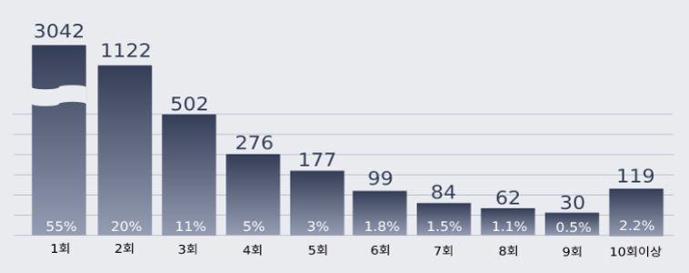 먼저, 이번 분석을 통해 범죄자 규모와 가담 횟수를 확인할 수 있었다.