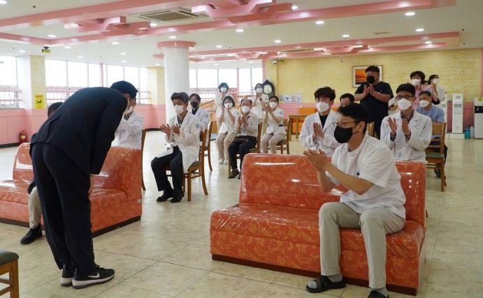 윤 시장은 “펜데믹 최전선에서 코로나19 극복과 시민 건강을 위해 헌신해준 의료진들의 노고와 헌신에 감사드린다”며 “일상 회복으로 전환됐지만 여전히 일상에 잔존하는 감염병으로부터 고위험군 시민이 건강에 위협을 받지 않도록 양질의 의료서비스 제공에 힘써주길 바란다”고 당부했다.