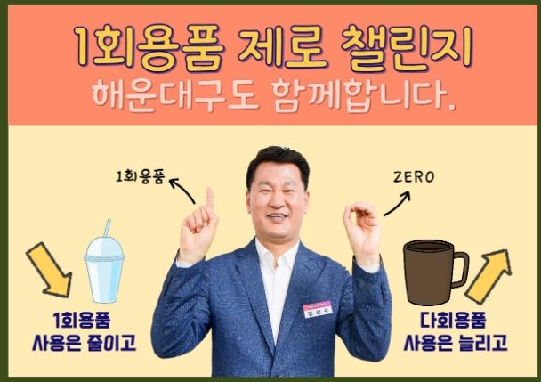 [제주교통복지신문 김강석 기자] 김성수 해운대구청장이 일상 속 1회용품 사용 줄이기 실천 다짐 릴레이 ‘1회용품 제로 챌린지’에 동참했다.