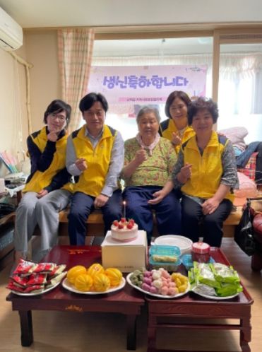 이날 생일상에는 읍 협의체 위원들이 정성스레 준비한 미역국과 반찬이 상에 놓였고 후원업체인 뚜레쥬르, 민속떡집에서 케이크와 떡을 꾸준히 지원함으로써 풍성한 생일상이 마련됐다.