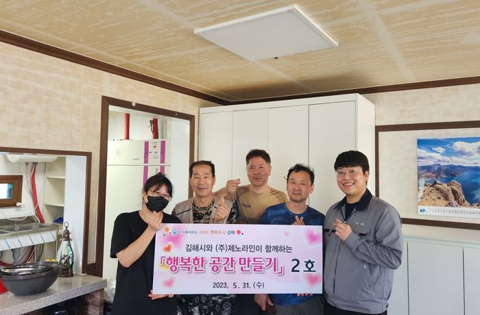 ㈜제노라인은 생림면 소재 친환경 주방가구업체로 김해시 1호 강소기업이다. 기업의 전문적인 기술력을 바탕으로 지역사회 공헌을 위해 올해 처음으로 김해시와 협약을 맺고 열악한 소규모 사회복지시설의 내부 리모델링을 지원하고 있다. 김해시가 대상자를 선정하고 시공 일정을 조율하면 ㈜제노라인이 제작과 시공을 지원하는 방식이다.