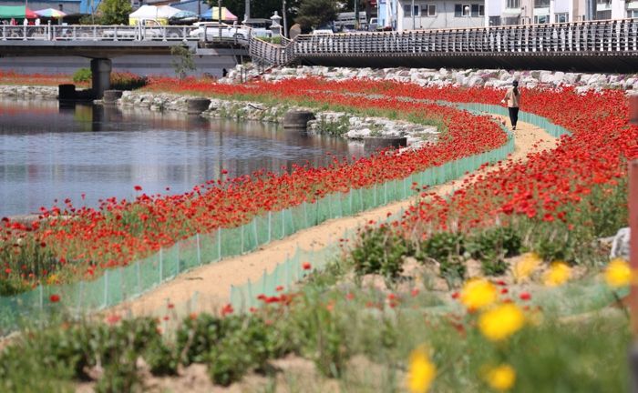 [제주교통복지신문 김강석 기자] 임실천에 붉게 물든 꽃양귀비가 아름다운 경관을 선사하고 있는 가운데 임실군이 꽃과 나무가 어우러지는 녹색환경 조성에 박차를 가하고 있다.