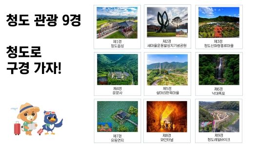 [제주교통복지신문 김강석 기자] 청도군은 5월 31일 ‘청도 관광 9경 선정위원회’를 개최하고 자연환경 변화와 새로운 관광지 개발 등 최근 관광 트렌드를 반영한 청도 관광 9경(景)을 새롭게 선정했다.