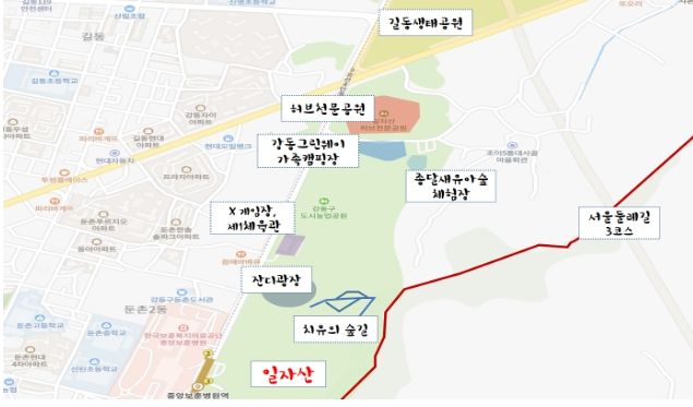 이현삼 푸른도시과장은 “강동구 일자산은 다른 곳에서 느낄 수 없는 특별한 매력을 갖고 있으니 많은 분들이 찾아와 즐겨주시길 바란다.”며 “앞으로도 편의시설을 확충하고 다양한 프로그램을 제공할 수 있도록 노력하겠다.”고 말했다.