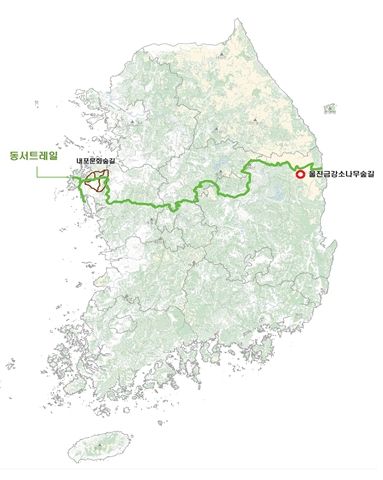 동서트레일은 경북 울진군에서 충남 태안군까지 5개 시·도 849km의 장거리를 한반도를 횡단해 연결하는 최초의 숲길이다.