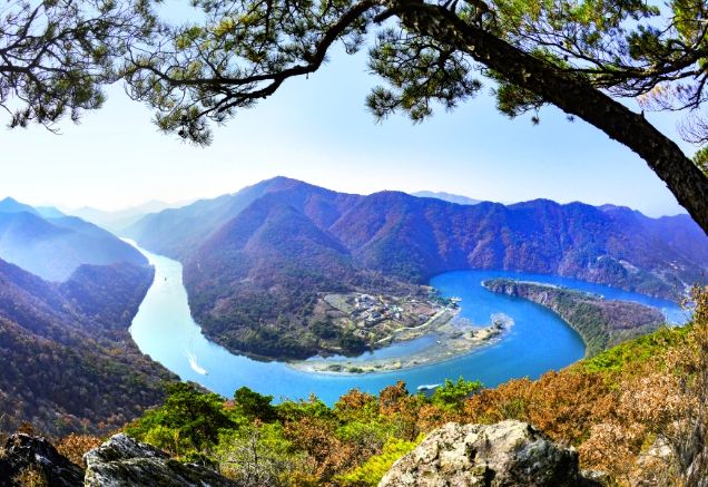 영동의 월류봉은 ‘달이 머무르는 봉우리’라는 뜻의 이름처럼 직립한 절벽에 걸려 있는 풍광이 아름다운 곳으로 호젓한 산책길로 유명하다.
