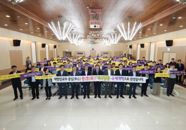 행사 마지막에는 대형 글자판과 미니현수막을 이용한 퍼포먼스를 펼치며, “적극행정, 규제개혁으로 대한민국의 중심에 서는 충북을 실현”하겠다는 강력한 의지를 다졌다.