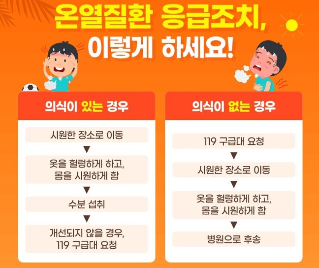 여름철 폭염 국민 행동 요령으로 △여름철 기상상황에 주목 및 정보 공유 △가벼운 증세 발생에도 그늘 및 무더위 쉼터 이용 휴식 △외출 시 물을 많이 마시고, 카페인 함유 음료 지양 △가장 더운 오후2시~5시에는 야외활동 및 작업 자제 등이 있다.