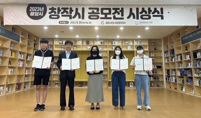 [제주교통복지신문 김강석 기자] 광양중앙도서관은 5월 31일 도서관 문화공간 ‘하루’에서 ‘2023 창작시 공모전’ 입상자 5명을 초청해 상장과 부상을 전수했다고 밝혔다.