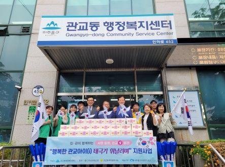 [제주교통복지신문 김강석 기자] 인천 미추홀구 관교동 행정복지센터는 1일 인천순복음교회, 미추홀구시설관리공단, 관교동 새마을부녀회와 함께 저소득 초등학교 재학 가정 30세대를 대상으로 ‘행복한 관교아이(i) 태극기 휘날리며’를 진행했다.