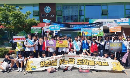 행진은 함양중학교를 시작으로 동문사거리, 보건소까지 걸어가는 경로로 진행됐다. 행진을 하는 동안 학생들은 저마다 어깨띠를 두르고 피켓을 들며 ‘금연합시다!“를 외치며 적극적으로 금연메시지를 알리는 모습을 보였다.