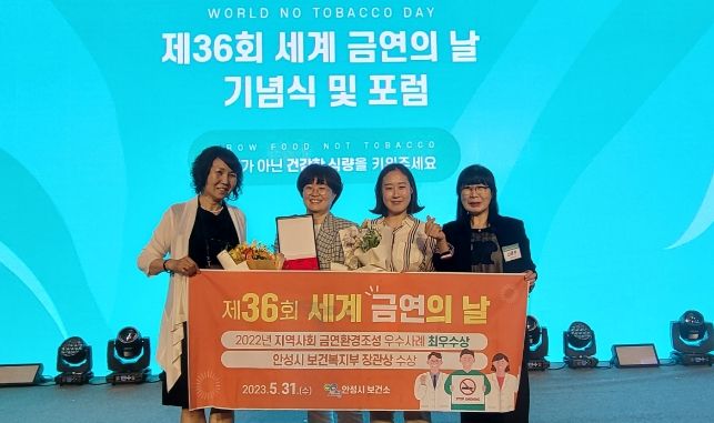 보건복지부와 한국건강증진개발원은 전국 지자체 금연사업 우수사례를 접수해 평가했으며, 안성시는 '안성맞춤 지역사회 금연(민․관‧상) 수평적 협력체계'로 최우수 기관으로 선정되어 세계금연의 날 기념식 표창 대상자로 무대에 올라 수상하는 영예를 얻게됐다.