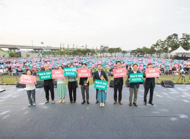 강범석 서구청장은 “우리 서구가 인구 60만을 넘어 이를 기념하는 자리에 객석을 메워주신 구민 여러분 덕분에 벅차고 설렌 순간”이라며 “서구는 사람을 모이게 하는 특별한 장점과 매력이 있다”며 “커진 덩치만큼 이를 위한 내실도 두루 갖춰나가겠다”고 말했다.