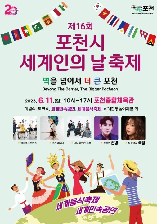 [제주교통복지신문 김강석 기자] 포천시가 제16회 세계인의 날을 맞아 ‘벽’을 넘어서 ‘더 큰 포천’이란 슬로건 아래 오는 6월 11일 포천종합체육관에서 외국인 주민과 다문화 가족 및 시민들이 함께 어울리는 세계인의 날 행사를 개최한다.