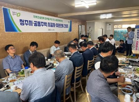 간담회에는 백두흠 청주시 주택토지국장 및 관계부서장과 관내 12개 공동주택 시공사 현장대리인과 대한전문건설협회 충북도회 등 4개 협회의 임원이 참석했다.