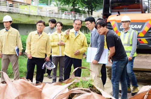 이날 주례동 공동주택 신축공사 현장, 학장천 공영주차장 복개구조물 준설공사 현장, 주감초등학교 인근 급경사지 등을 돌며 현장을 점검했다.