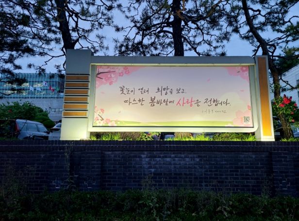 ‘수원희망글판’은 2012년 시작한 시민 참여형 거리 인문사업으로, 계절이 바뀔 때마다 삶의 여유와 희망을 전하고 계절에 어울리는 글귀를 선정해 수원시 내 곳곳에 게시하는 것이다. ‘2023년 수원희망글판 가을편’ 메시지 전달자는 ‘인문학자문위원회’ 자문을 거쳐 7월 중 선정할 예정이다.
