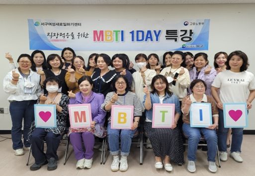 [제주교통복지신문 김강석 기자] 서구여성새로일하기센터는 6월 1일 2023년 집단상담 프로그램 사후관리사업 일환으로 취업을 희망하는 여성을 위한 『직장적응을 위한 MBTI 1DAY 특강』를 운영하여 MBTI 검사 실시, 해석하여 자신과 타인 이해 및 진로적성 탐색 등 취업 희망 여성들을 위한 맞춤형 취업지원 서비스를 제공했다.