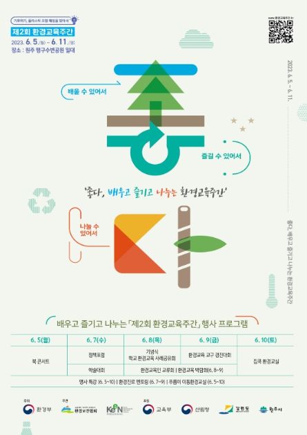 6월 8일부터 9일 동안에는 원주시 행구수변공원 일대에서 환경교육주간 기념식과 함께 환경교육 박람회(6월 8~9일), 학교교육 사례공유회(6월 8일), 환경교육인 교류회(6월 8~9일) 등의 대한민국 환경교육 한마당 행사가 진행된다. 또한, 6월 7일부터 5일간 환경교육주간 누리집을 통해서 환경교육 명사 특강이 영상으로 제공되며, 올해 4월 10일부터 5월 11일 동안 진행한 공모전에서 우수 작품으로 선정된 환경교육 영상도 함께 소개된다.