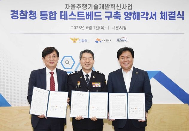 [제주교통복지신문 김강석 기자] 경찰청은 6. 1일 시흥시청에서 4개 부처(경찰청, 산업통상자원부, 국토교통부, 과학기술정보통신부)가 합동으로 진행 중인 자율주행기술개발혁신 사업의 경찰청 소관 과제 통합 시험장 구축을 위해 시흥시(시장 임병택), 자율주행기술개발혁신사업단(사업단장 최진우)과 양해각서를 체결했다.