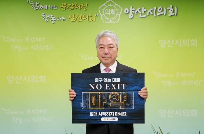 [제주교통복지신문 김강석 기자] 이종희 양산시의회 의장이 6월 1일 마약중독의 심각성을 알리고 마약범죄 예방을 위한 ‘NO EXIT’ 릴레이 캠페인에 동참했다.