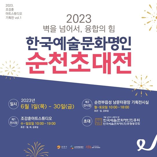 [제주교통복지신문 김강석 기자] (재)순천문화재단이 수탁 운영하는 순천 창작예술촌 3호 조강훈 아트스튜디오에서 오는 30일까지 ‘2023 한국예술문화명인 순천초대전’이 열린다.