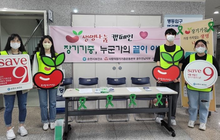 시는 오는 27일에는 연향동 국민은행 앞에서 신장장애인협회 전남협회와 장기기증 홍보 캠페인을 펼칠 예정이다.