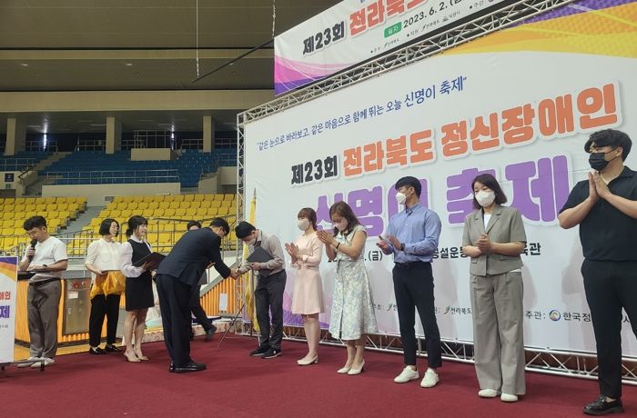 [제주교통복지신문 김강석 기자] ‘제23회 전라북도 정신장애인 신명이축제’가 2일 익산실내체육관에서 삼정원(익산), 정심원(완주), 참사랑낙원(전주), 스마일빌(남원) 등 전라북도 4개 정신요양시설 생활인과 종사자 500여명이 참여한 가운데 펼쳐졌다.