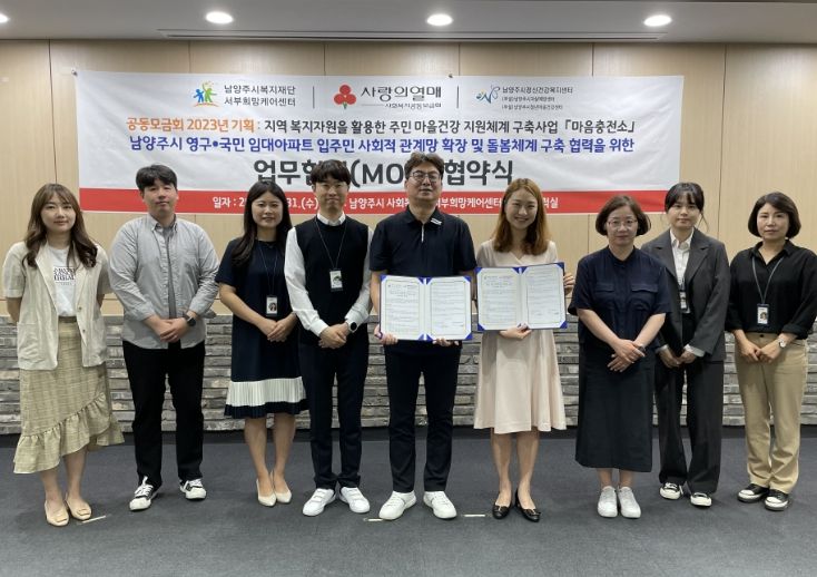 이번 업무 협약은 남양주시 영구·국민임대아파트 입주민을 대상으로 한 우울 회복 프로그램과 공동 사례 관리 등 업무 진행 시 상호 교류하며, 궁극적으로 남양주시의 복지 발전을 이루기 위해 추진됐다.