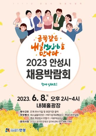 [제주교통복지신문 김강석 기자] 안성시는 오는 6월 8일 내혜홀광장에서 '금쪽같은 내일(My job)을 만나다' 라는 주제로 2023 안성시 채용박람회를 개최한다.