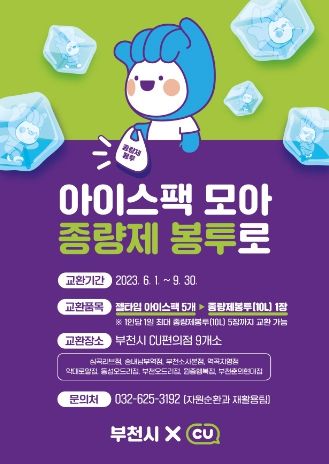 [제주교통복지신문 김강석 기자] 부천시는 지난 6월 1일부터 오는 9월 30일까지 CU편의점 송내남부역점 등 9개소에서 아이스팩 수거 보상제를 실시한다.