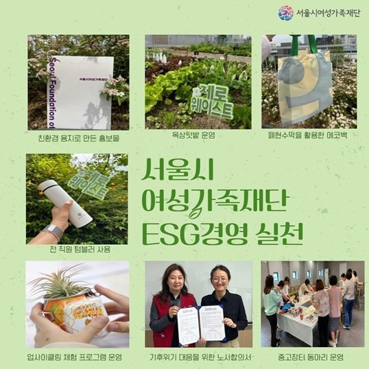 서울시여성가족재단 정연정 대표이사는 “기후위기 대응은 더 이상 선택의 문제가 아닌 만큼 재단의 임직원이 협력해 탄소 절감과 환경 보호에 앞장설 수 있도록 다방면의 노력을 펼쳐나가고자 한다”라며, “앞으로도 ESG(환경·사회·지배구조) 경영 실천을 위해 재단 임직원이 합심하여 지속해서 내실을 다져나가겠다”라고 말했다.