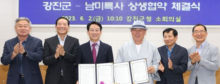 [제주교통복지신문 김강석 기자] 강진군은 지난 2일 세계불교 미륵대종 남미륵사와 ‘지역경제 활성화를 위한 상생협약’을 체결했다고 밝혔다.
