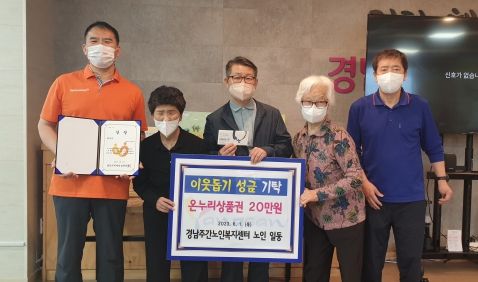 [제주교통복지신문 김강석 기자] 양산시 신기동 소재의 경남주간노인복지센터의 어르신들이 최근 공모전에서 받은 상금(온누리상품권) 20만원 전액을 삼성동행정복지센터에 기탁해 화제가 되고 있다.