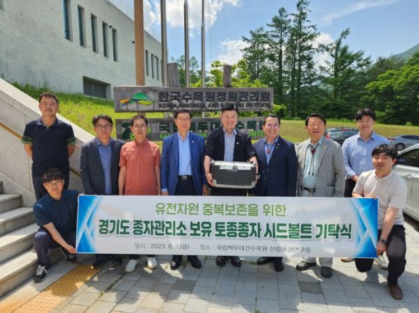 [제주교통복지신문 김강석 기자] 경기도의회 농정해양위원회 방성환(국민의힘, 성남5), 이오수(국민의힘, 수원9) 의원은 2일 경북 봉화군에 위치한 생명유전자원 종자 기탁 시설인 시드볼트를 방문해 경기도 종자관리소가 보유하고 있는 토종종자를 기탁하는 행사를 가졌다..